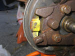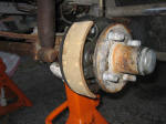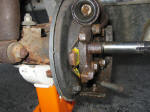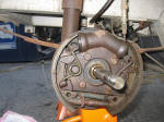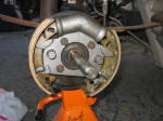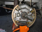 Step 6: Remove the 4 bolts holding the spider to the spindle. If the backing plate is greasy as mine was, remove it and clean it to prevent the grease from getting on the new shoes. |